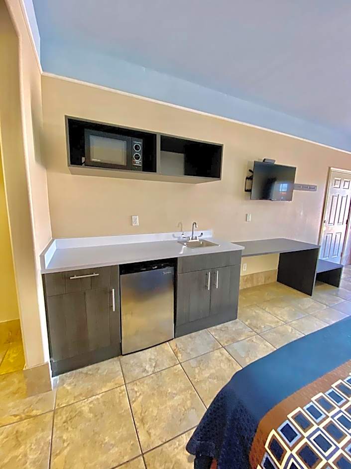 This room features a kitchenette and cable TV. A microwave is also provided.